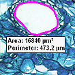 Discriminate and measure spheres (cicular diameter, sphericity) and their pores (area)
